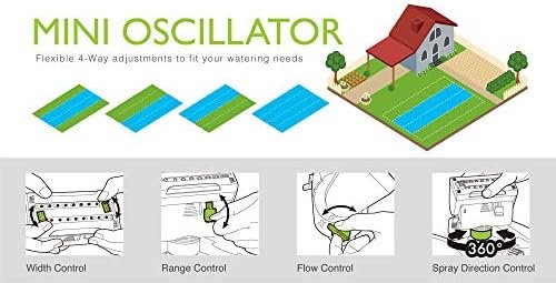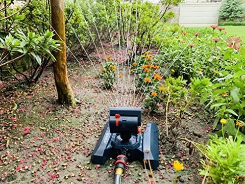 * Precision Four-Way Adjustments: Unlike basic models, this sprinkler provides independent control over width, length, water flow, and a full 360-degree angle. This level of control is ideal for watering narrow strips of grass between driveways or covering irregularly shaped garden beds without wasting water on sidewalks.