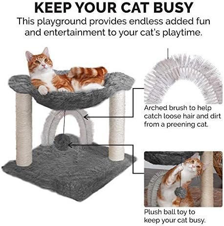 The low height (15.75″) is accessible for older cats with mobility issues. The soft hammock provides orthopedic comfort, and the gentle self-grooming brush stimulates blood flow without requiring vigorous activity. It’s a gentle enrichment tool for aging felines.