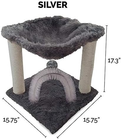 This compact vertical structure measures just 15.75″ x 15.75″ x 17.3″, making it an ideal solution for apartments or smaller homes where space is at a premium. The silver finish blends seamlessly with modern decor while offering your cat multiple engagement zones. From the swipeable hanging plush ball to the integrated self-grooming brush, every element serves a specific behavioral need.