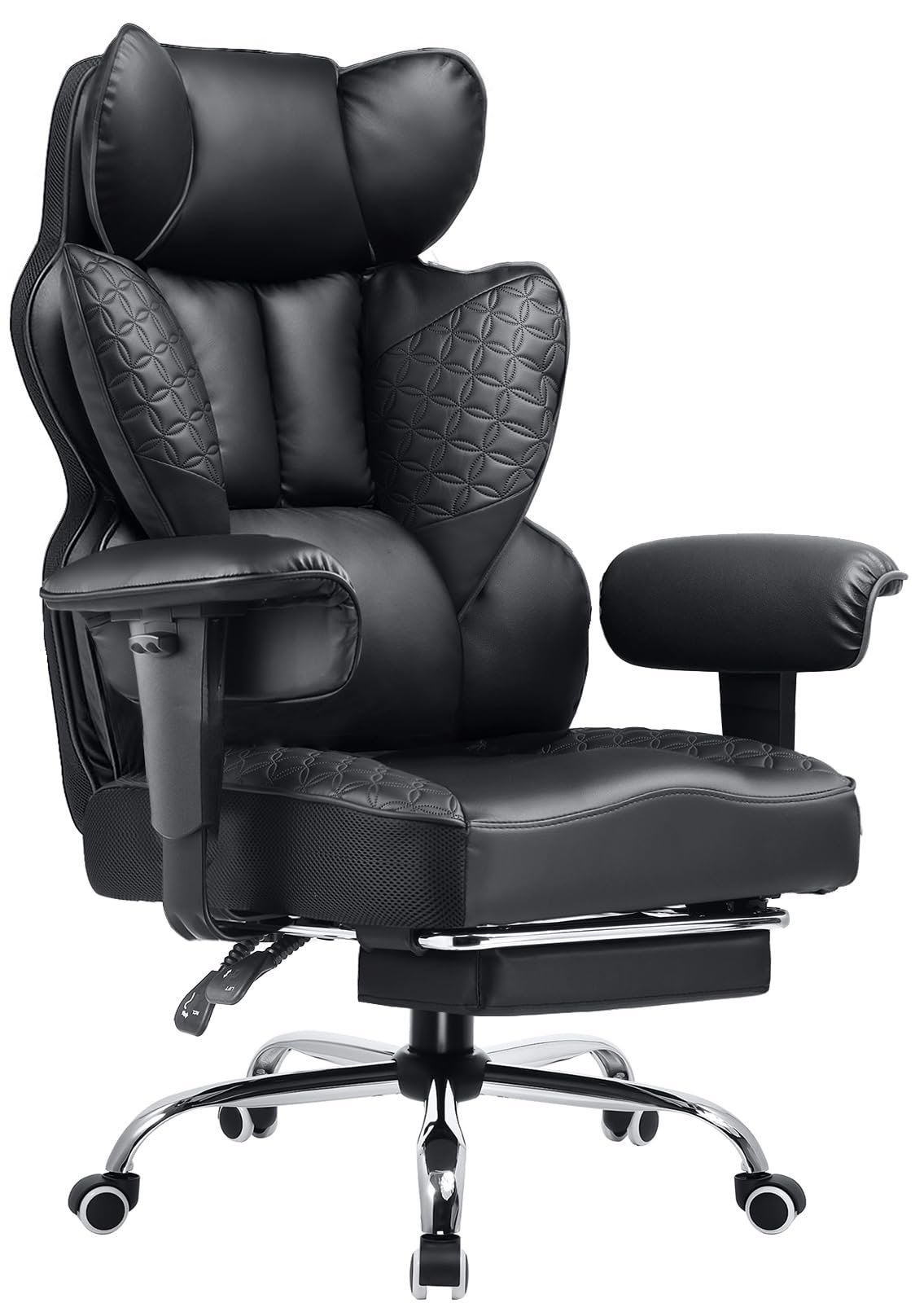 Transform your workspace with the COMHOMA Ergonomic Office Chair, designed to deliver exceptional comfort, support, and modern style. Built with a breathable mesh back and thick, high-density seat cushion, this chair promotes healthy posture and reduces pressure during long hours of work or study. The 150° reclining function, adjustable height, and flip-up armrests provide versatile positioning to fit your personal comfort needs. Its smooth-rolling casters and 360° swivel design allow effortless mobility on any surface. The elegant leather finish and detailed embossing add a touch of sophistication, making it perfect for both home and executive office environments. Whether you’re working, gaming, or relaxing, the COMHOMA office chair ensures premium support and durability. Enhance your productivity and comfort today with a chair made to fit your lifestyle.