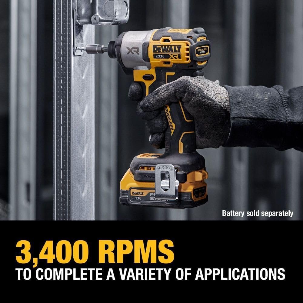 The DEWALT DCF845B 20V MAX XR 1/4″ 3-Speed Impact Driver is a professional-grade tool designed for maximum power and precision. Equipped with a brushless motor, it delivers up to 1,825 in-lbs of torque and 3,400 RPM, making it ideal for driving large screws and handling tough fastening jobs. Its compact, lightweight design ensures comfort during extended use, while the integrated LED work light enhances visibility in dim areas. With three speed settings and TOOL CONNECT™ compatibility, this impact driver offers versatility, efficiency, and reliable performance for both contractors and DIY enthusiasts.