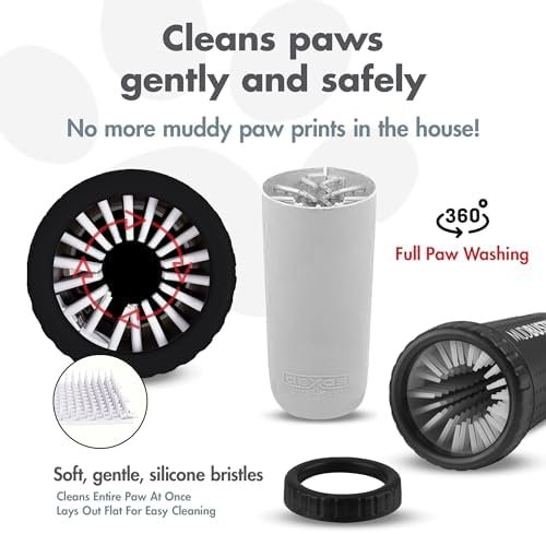 * Mess-Free Containment: The design features a TPR rubber base that keeps the unit stable while the twisting action happens. The gentle silicone bristles help remove dirt and mud from your dog’s paws, keeping the mess contained inside the container rather than splashing onto your floors or clothing.