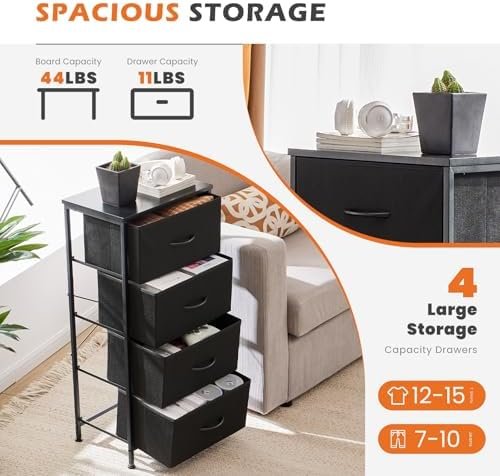 * Removable Fabric Drawers: The four drawers are made of high-quality fabric that can be removed entirely. This allows for easy cleaning or reorganizing the internal contents without having to empty the entire unit. It is excellent for categorizing items like socks, accessories, or stationery.