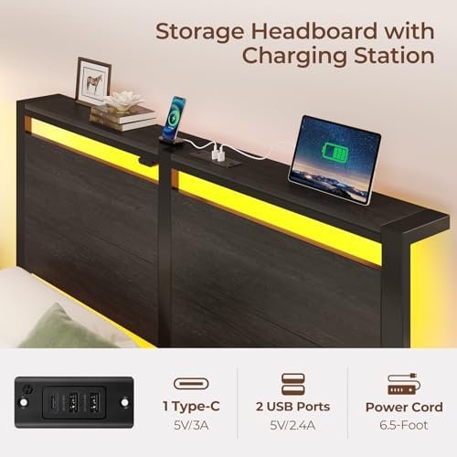 * Integrated Power Hub: The built-in charging station is a game-changer, featuring 2 USB-A ports and 1 Type-C port strategically located on the headboard. This setup allows you to charge a phone, tablet, and even a reading lamp simultaneously, eliminating the need for bulky extension cords or nightstand clutter. It supports fast charging for compatible devices, keeping your electronics powered throughout the night.