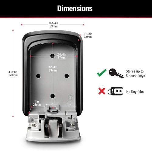* High-Capacity Design: Unlike standard single-key boxes, the Master Lock 5401EC accommodates up to five standard keys. This is ideal for commercial properties, shared family homes, or rental units where multiple keys need to be accessible to authorized personnel. The interior dimensions are 3-1/4 inch (8.3 cm) H x 2-1/4 inch (5.7 cm) W x 1 inch (2.5 cm) D, providing ample space for key rings or bulky keys.