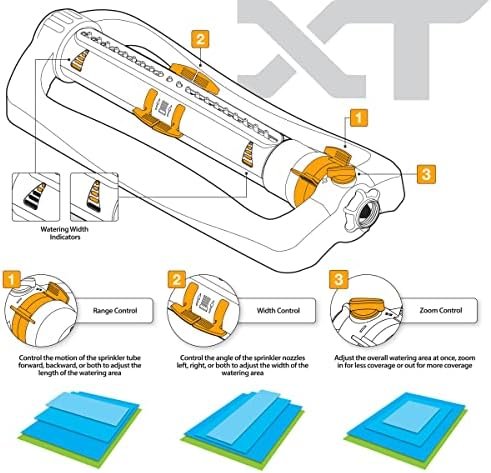 * Zoom Control: This feature allows you to adjust the overall watering area with a simple slide. Zoom in for a small patch of newly seeded lawn or zoom out to cover a large section of the yard, giving you total control over the water distribution.